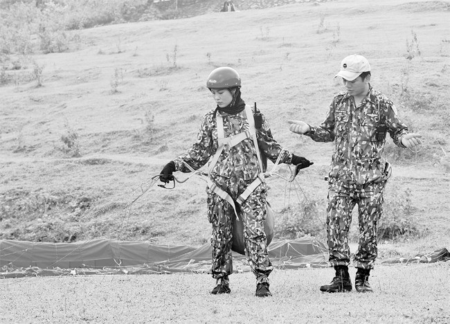 Mồ hôi đã nhỏ thành từng giọt trên khuôn mặt mỗi người, thấm đẫm lưng áo của từng học viên sau mỗi lần cất cánh. Nhưng họ vẫn không dừng lại. Chỉ uống tạm hớp nước, nhai vội miếng dứa hoặc quả trứng luộc để lấy sức, họ lại khoác lên người đai tập và ôm dù ra giữa bãi. Điều đáng nói ở các học viên là tất cả đều nỗ lực hoàn thành bài tập trong buổi sáng để buổi chiều có thể tập trên đồi nhưng họ cũng chẳng nề hà trong việc giúp đồng đội rải dù, căng dù mỗi khi trời không có gió, thay vì chui vào đâu đó ngồi nghỉ.