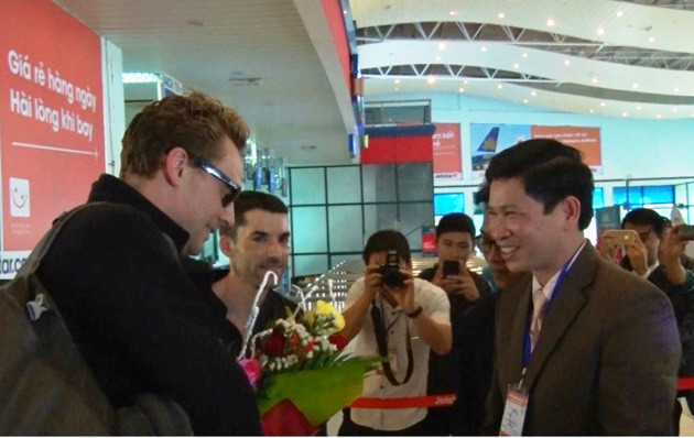 Ngay sau đó, các thành viên đoàn làm phim lên các xe đợi sẵn, đến phim trường tại khu vực Phong Nha- Kẻ Bàng để thực hiện những cảnh quay đầu tiên ở Việt Nam từ 23-2.