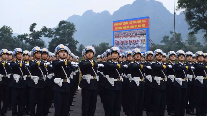 Một số hình ảnh về buổi hợp luyện chuẩn bị cho diễu binh, diễu hành kỷ niệm 50 năm giải phóng miền nam, thống nhất đất nước của các khối Hải quân: