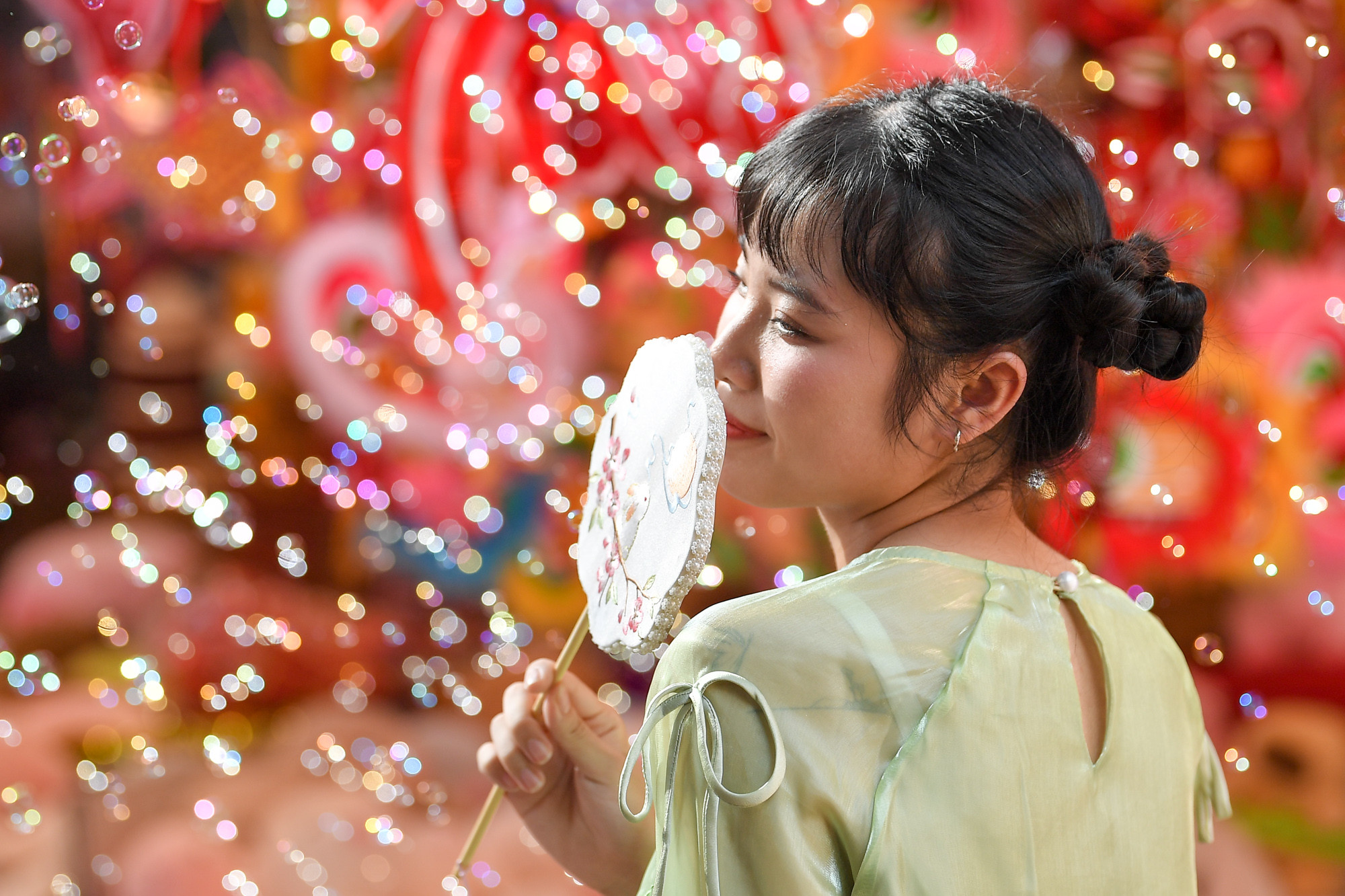 | Bạn Ngọc Thụy cho biết: "Đây là lần đầu, tôi đến phố Hàng Mã để chụp hình. Phố Hàng Mã thời điểm này không quá đông, tôi có thể thoải mái chọn lựa đồ trang trí cũng như chụp những bức hình cho mùa Tết Trung thu năm nay". |