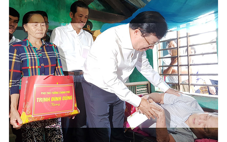 Phó Thủ tướng Trịnh Đình Dũng thăm, tặng quà cho bệnh binh Nguyễn Thanh Chữ.