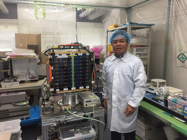 Tổng giám đốc Trung tâm Vũ trụ Việt Nam Phạm Anh Tuấn sang thăm vệ tinh MDG trước khi chuyển giao vệ tinh cho dịch vụ phóng.