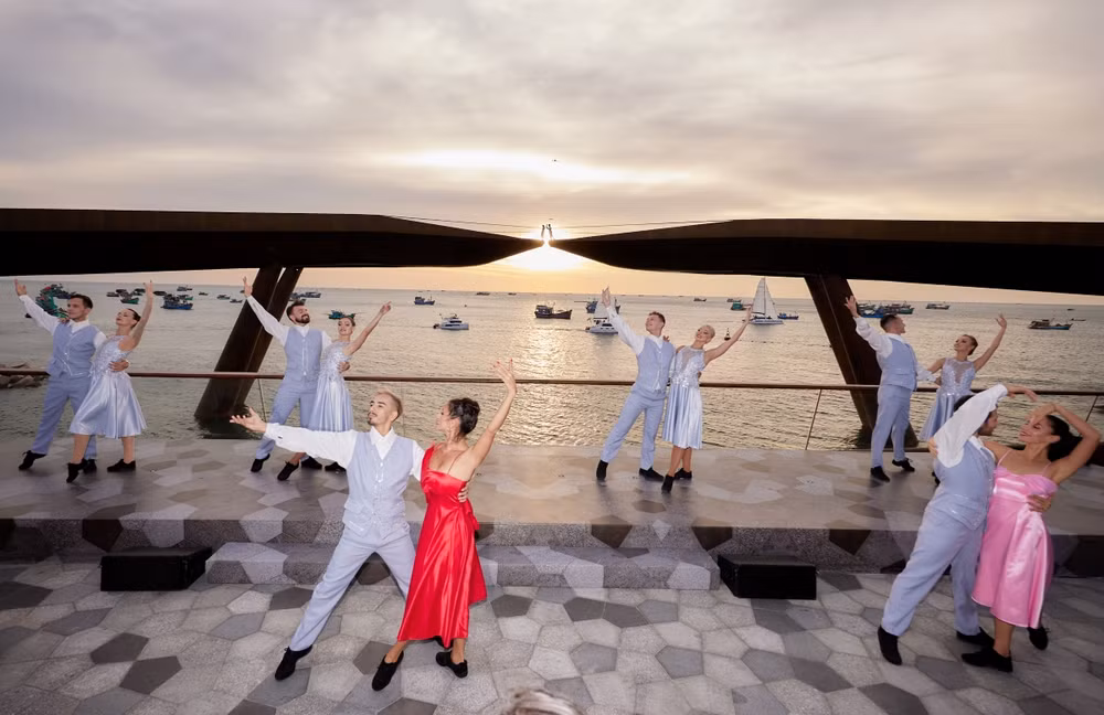 Được thiết kế như một tác phẩm điêu khắc trên mặt nước biển, Cầu Hôn khiến giới kiến trúc kinh ngạc bởi độ khó, khi các đường nét mềm mại như một dải lụa vươn ra giữa biển cũng chính là kết cấu tạo nên sự vững chắc của cây cầu.