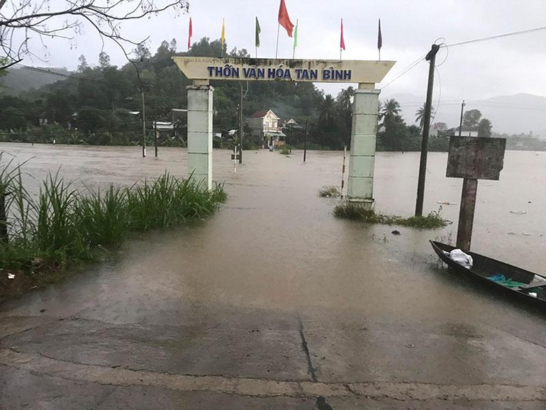 Đến 7 giờ 30 phút sáng nay, 12/10, các tuyến giao thông đi về trung tâm huyện đã bị nước ngập, thị trấn La Hai bị cô lập hoàn toàn.
