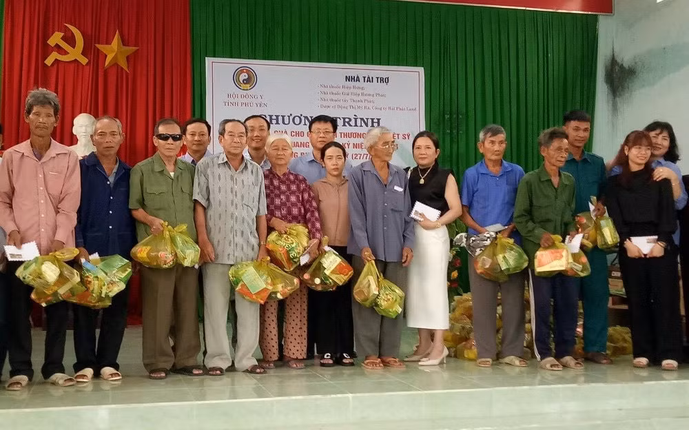 Sáng nay (ngày 26/7), Hội Đông y tỉnh Phú Yên phối hợp huyện Đồng Xuân và các nhà thuốc tại thành phố Tuy Hòa tổ chức khám, cấp thuốc và tặng 100 suất quà cho các gia đình thương binh, liệt sĩ tại xã Xuân Quang 1, huyện miền núi Đồng Xuân. Mỗi suất quà gồm thuốc chữa bệnh, tiền mặt trị giá 650.000/suất.
