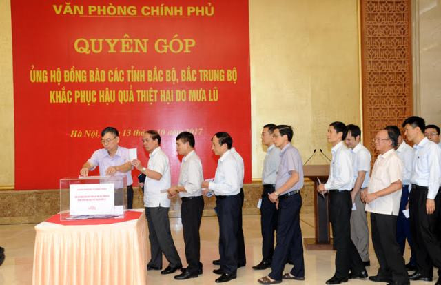 Toàn bộ số tiền trong đợt quyên góp này sẽ được VPCP sớm chuyển tới đồng bào các tỉnh Bắc Bộ, Bắc Trung Bộ.