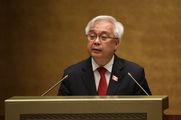 Chủ nhiệm Ủy ban Văn hóa, Giáo dục, Thanh niên, Thiếu niên và Nhi đồng của Quốc hội Phan Thanh Bình trình bày Báo cáo thẩm tra dự án Luật sửa đổi, bổ sung một số điều của Luật Giáo dục đại học. Ảnh: ANH KHOA