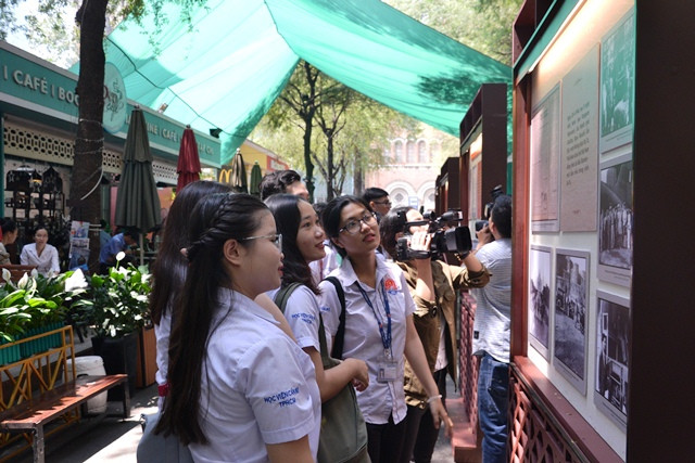 Rất đông học sinh, sinh viên đến tìm hiểu tư liệu về phái đoàn Quốc hội Việt Nam khóa I lần đầu sang thăm CH Pháp.