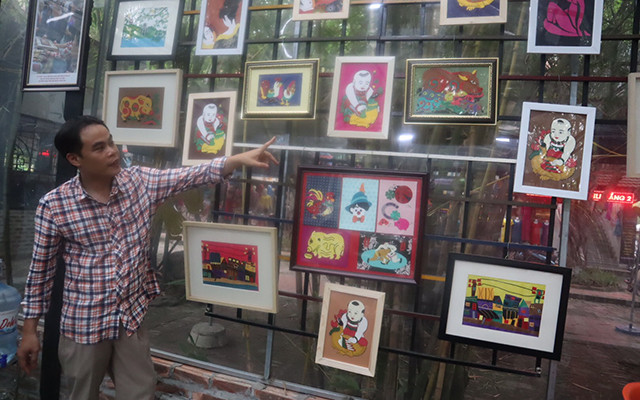 Anh Lê Việt Cường giới thiệu về những bức tranh ghép vải tại Vụn Art.