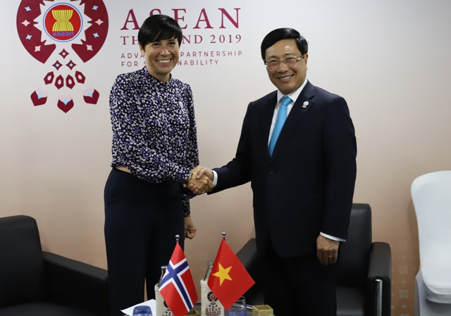 Tại cuộc gặp Bộ trưởng Ngoại giao Na Uy, Eriksen Soreide, Phó Thủ tướng Phạm Bình Minh và Bộ trưởng Soreide bày tỏ vui mừng trước sự phát triển tích cực của quan hệ hai nước thời gian qua, đặc biệt là sau chuyến thăm chính thức Na Uy của Thủ tướng Chính phủ Nguyễn Xuân Phúc, tháng 5-2019; nhất trí thúc đẩy đàm phán Hiệp định Thương mại tự do giữa Việt Nam với Khối Mậu dịch tự do châu Âu (EFTA).