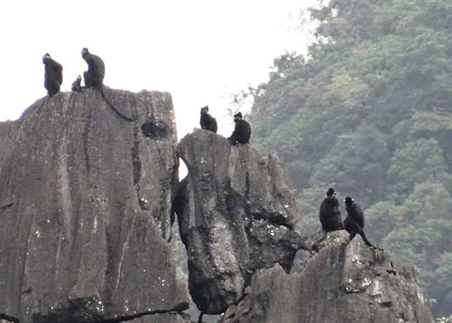 Voọc leo trèo, vui đùa nhau trên mỏm núi đá vôi ở xã Thạch Hóa.