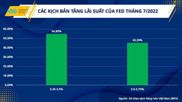 Trước khi dữ liệu giá trong tháng 6 được công bố, nhiều nhà đầu tư tin rằng 50 hoặc 75 điểm cơ bản sẽ được bổ sung vào cuộc họp cuối tháng 7 sắp tới. Tuy nhiên, thị trường đã có những phản ứng mạnh mẽ ngay lập tức sau khi mức lạm phát đạt kỷ lục. Theo công cụ theo dõi lãi suất Fed Watch của CME Group, niềm tin vào mức bổ sung 100 điểm cơ bản tăng vọt từ 0% vào cuối tuần trước lên mức 45%. Trong khi đó, tỷ lệ ý kiến cho rằng FED sẽ tăng 50 điểm cơ bản đã bị xóa sạch.