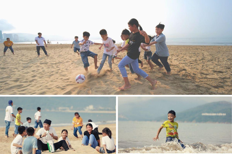 Tại Bình Định, các em nhỏ đã được tổ chức một buổi dã ngoại ở biển Quy Nhơn. Do chịu ảnh hưởng từ dịch Covid-19, sau 2 năm, các em tại Làng trẻ SOS Quy Nhơn mới được ra biển vui chơi. Thỏa thích đá bóng, nô đùa và hòa mình vào làn nước mát lạnh, nhiều em không giấu được sự phấn khích.