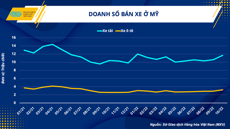 Doanh số bán xe tháng 10 ở Mỹ được công bố bao gồm cả xe ô-tô và xe tải đều tăng mạnh hơn so dự báo, bất chấp việc giá nhiên liệu vẫn đang neo ở mức cao. Đây là một yếu tố thúc đẩy nhu cầu tiêu thụ với bạch kim, nên giá của kim loại này đã hồi phục tốt hơn so với giá bạc trong thời gian gần đây. Cụ thể, doanh số bán xe ô-tô và xe tải lần lượt đạt 3,23 và 11,67 triệu chiếc, mức cao nhất kể từ tháng 7/2021.