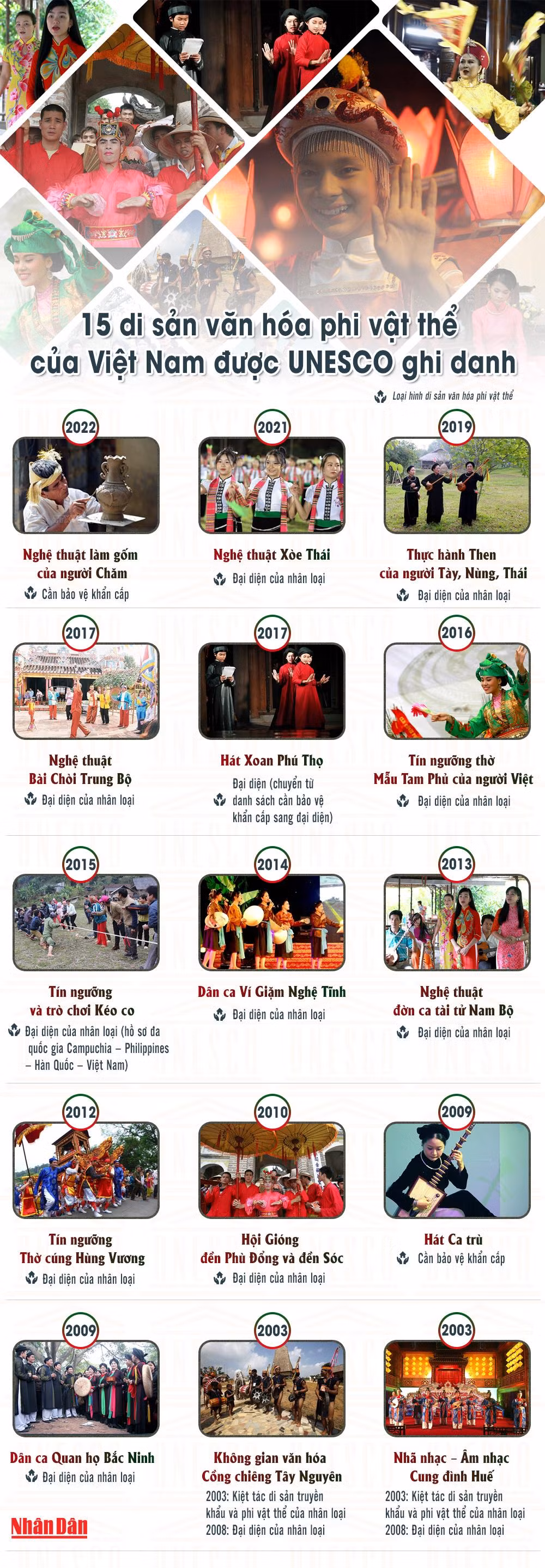 15 di sản văn hóa phi vật thể của Việt Nam được UNESCO ghi danh