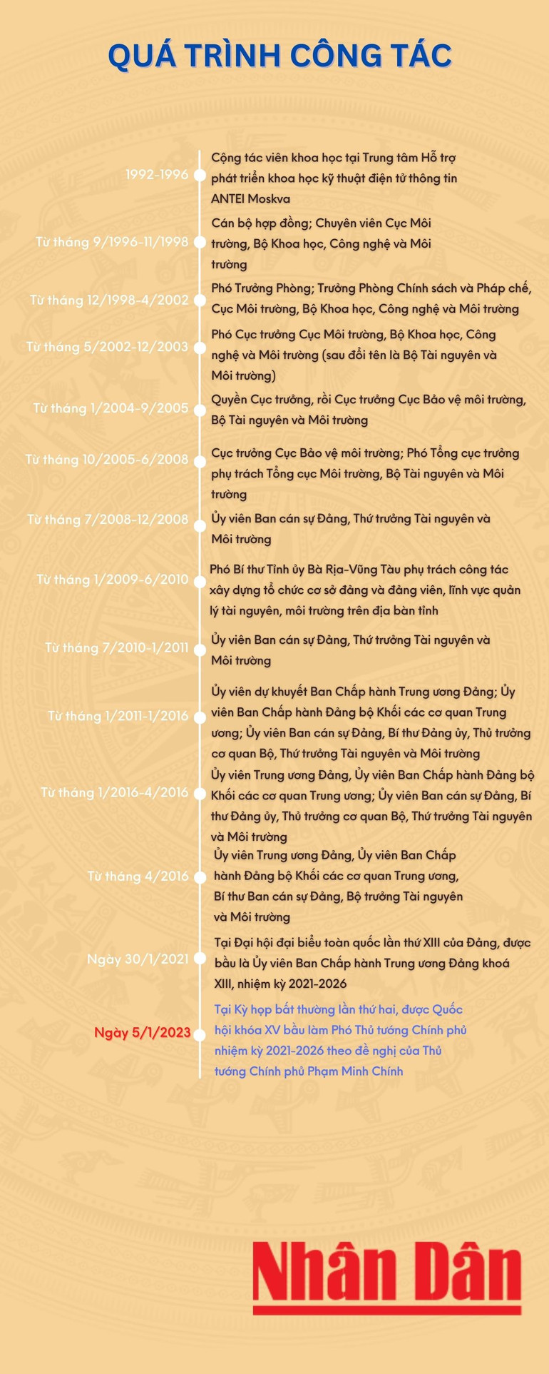 Ngày 5/1/2023, tại Kỳ họp bất thường lần thứ hai, Quốc hội khóa XV đã bầu đồng chí Trần Hồng Hà, Ủy viên Trung ương Đảng, Bộ trưởng Tài nguyên và Môi trường làm Phó Thủ tướng Chính phủ nhiệm kỳ 2021-2026 theo đề nghị của Thủ tướng Chính phủ Phạm Minh Chính.