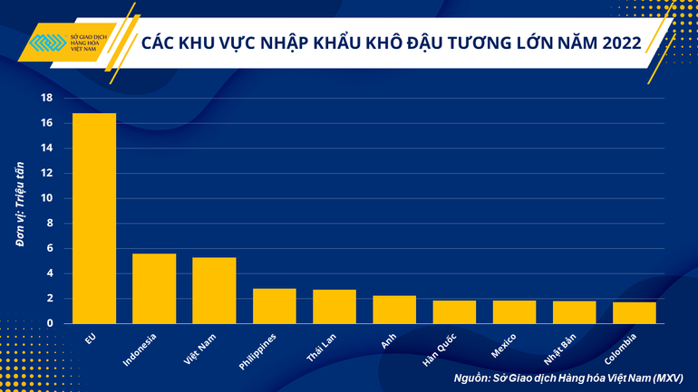 Theo thống kê, tổng nhu cầu thức ăn tinh (ngô, khô đậu tương, cám, bột cá…) cho toàn ngành chăn nuôi Việt Nam khoảng 33 triệu tấn/năm. Tuy nhiên, sản lượng trong nước chỉ đạt khoảng 13 triệu tấn/năm, tương đương với 35% và phải phụ thuộc phần lớn vào nguồn cung bên ngoài. Chỉ tính riêng mặt hàng khô đậu tương, năm 2022, Việt Nam mua khoảng 5,3 triệu tấn từ thị trường quốc tế và đứng thứ 3 trên bản đồ nhập khẩu thế giới.