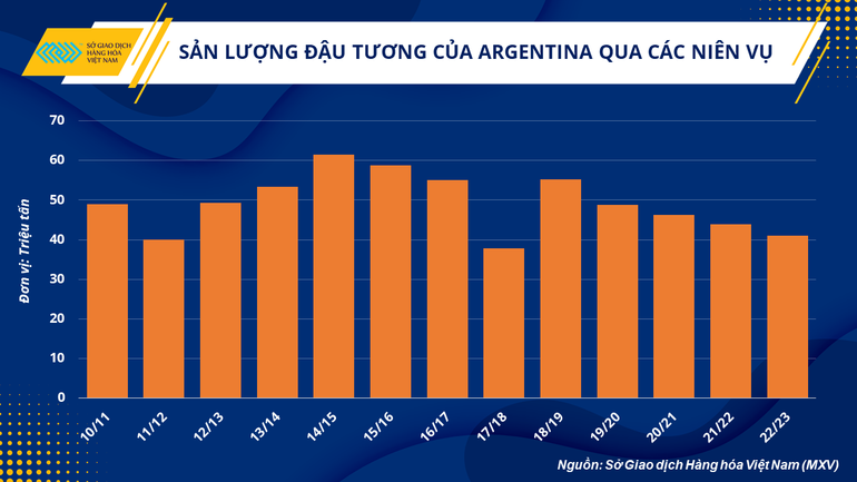 Sở Giao dịch Ngũ cốc Buenos Aires của Argentina (BAGE) cho biết tổ chức sẽ tiếp tục cắt giảm ước tính sản lượng đậu tương niên vụ 2022-2023 của nước này trong lần thứ tư khi cây trồng phải vật lộn với tác động của hạn hán và nhiệt độ cao. Con số này hiện đang được dự báo sẽ đạt 33,5 triệu tấn, giảm 30% so kỳ vọng ban đầu và thấp hơn dự báo 41 triệu tấn mà Bộ Nông nghiệp Mỹ đưa ra trong báo cáo Cung cầu tháng 2.