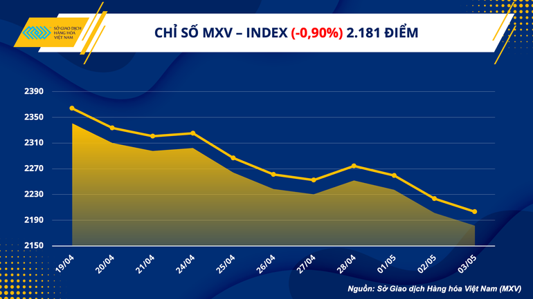 Như vậy, sau 3 phiên giảm mạnh liên tiếp, chỉ số hàng hóa này đã xuống mức thấp nhất kể từ cuối tháng 8/2021. Giá trị giao dịch toàn Sở cũng ghi nhận suy yếu, đạt trên 3.300 tỷ đồng.