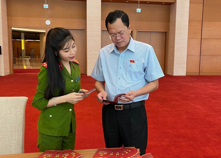 Đại diện Cục Cảnh sát quản lý hành chính về trật tự xã hội cho biết, từ ngày 1 đến 6/6/2023, đơn vị đã thành lập 2 đoàn công tác gồm 30 cán bộ, chiến sĩ tiến hành tại 2 địa điểm, thường trực nhận định danh điện tử cho đại biểu Quốc hội trong thời gian nghỉ giải lao và nghỉ giữa giờ khi các đại biểu có nhu cầu.