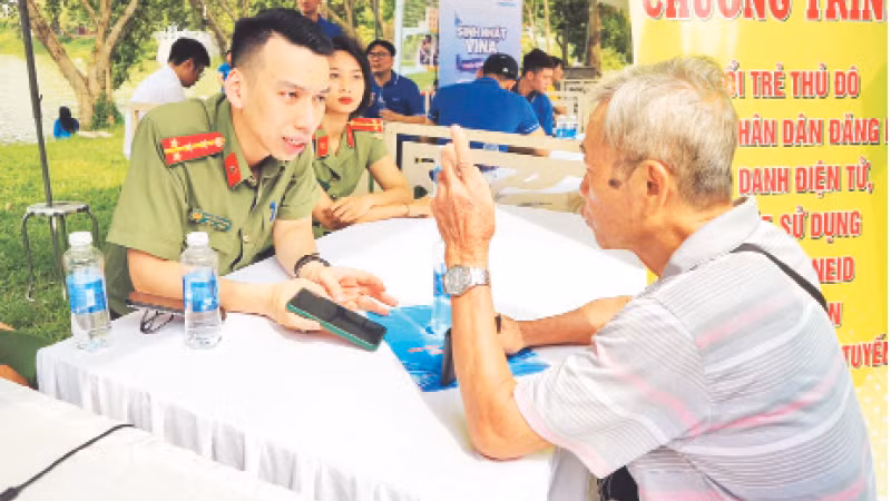 Cùng với đó, các đoàn viên thanh niên triển khai các hoạt động hỗ trợ đăng ký cấp căn cước công dân, hộ chiếu; kích hoạt định danh điện tử; cài đặt, sử dụng ứng dụng VneID. (Ảnh Thành Trung)