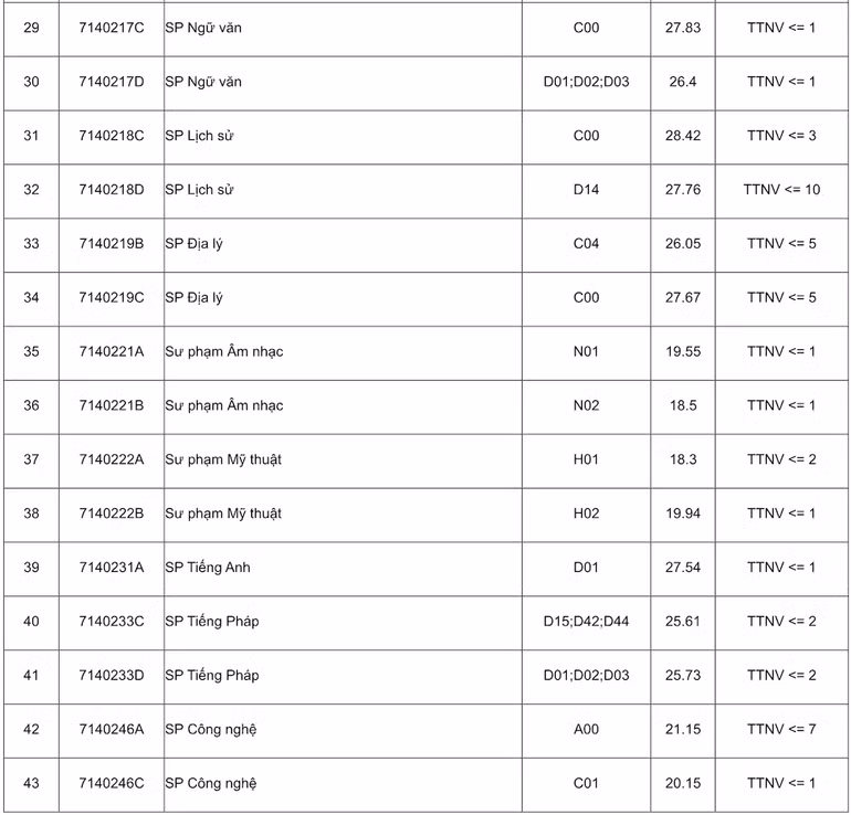 Điểm chuẩn của Trường đại học Sư phạm Hà Nội năm 2023 đối với các ngành khác (thang điểm 30) như sau: