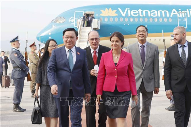 Lễ đón Chủ tịch Quốc hội Vương Đình Huệ tại Sân bay quốc tế Sofia. (ẢNH: TTXVN)
