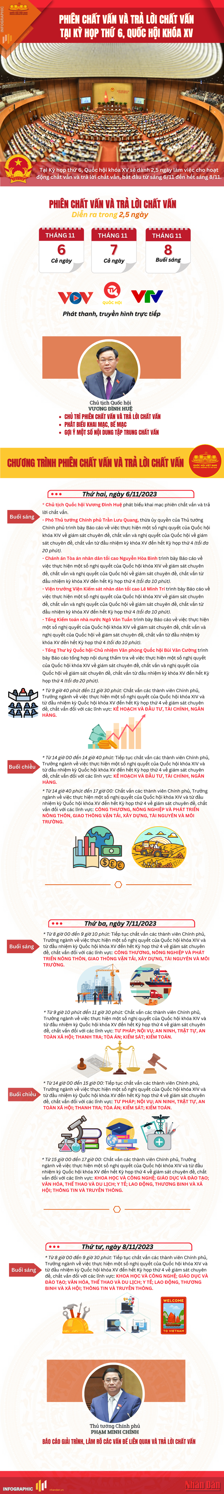 Các phiên chất vấn và trả lời chất vấn tại Kỳ họp thứ 6, Quốc hội khóa XV sẽ được phát thanh, truyền hình trực tiếp để cử tri và nhân dân theo dõi.
