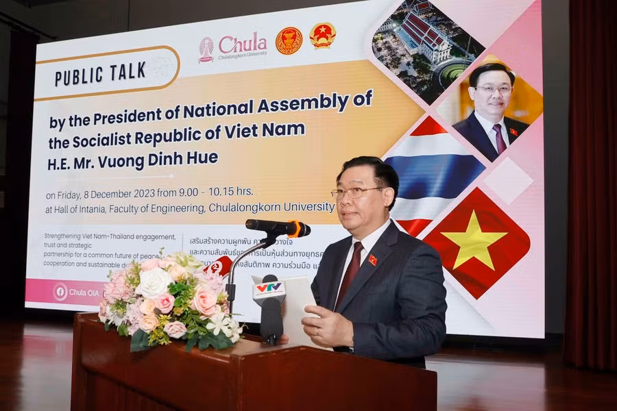 | Chủ tịch Quốc hội Vương Đình Huệ với đại biểu Đại học Chulalongkorn. |