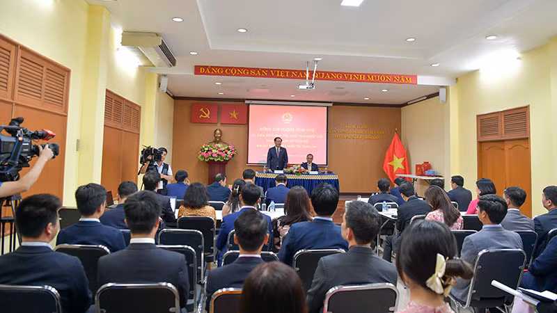 | Chủ tịch Quốc hội Vương Đình Huệ thăm và nói chuyện với cán bộ, nhân viên Đại sứ quán Việt Nam tại Thái Lan. |