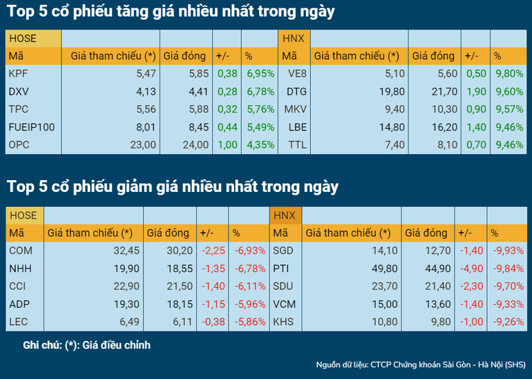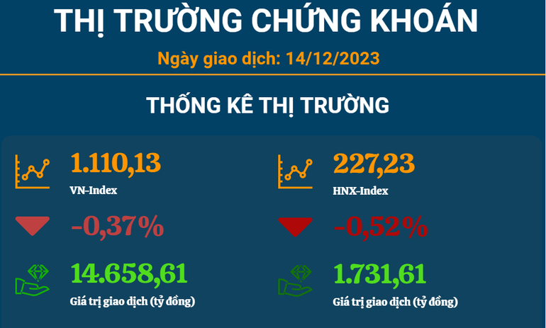 HNX-Index giảm 1,19 điểm (-0,52%) về mức 227,23 điểm.