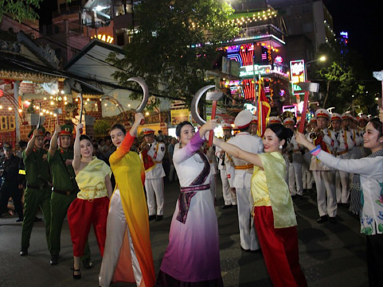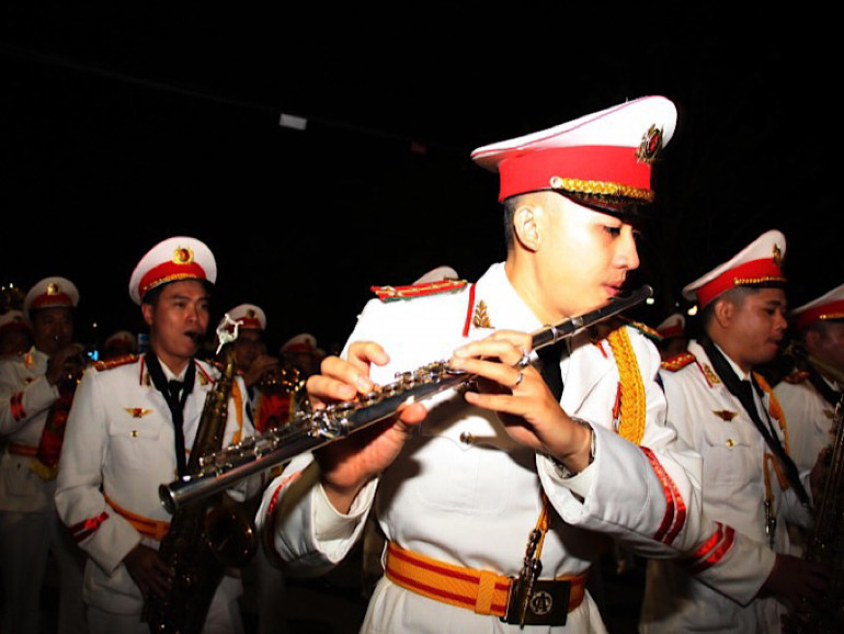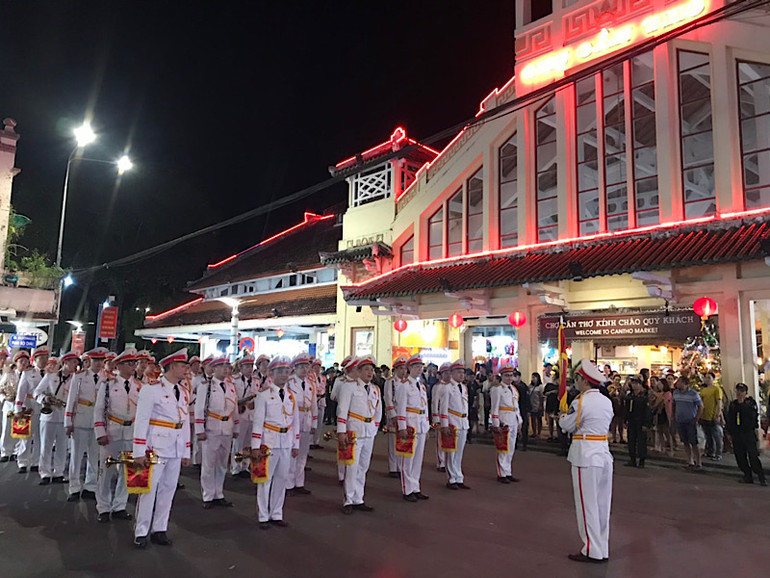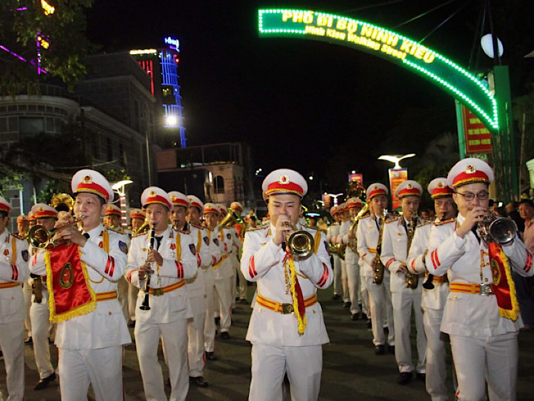Tối 16/12, Đoàn Nghi lễ Công an nhân dân thuộc Bộ Tư lệnh Cảnh sát cơ động đã biểu diễn nhạc kèn, diễu hành tại khu vực phố đi bộ và trước tượng đài Bác Hồ (phố Hai Bà Trưng, quận Ninh Kiều, thành phố Cần Thơ).