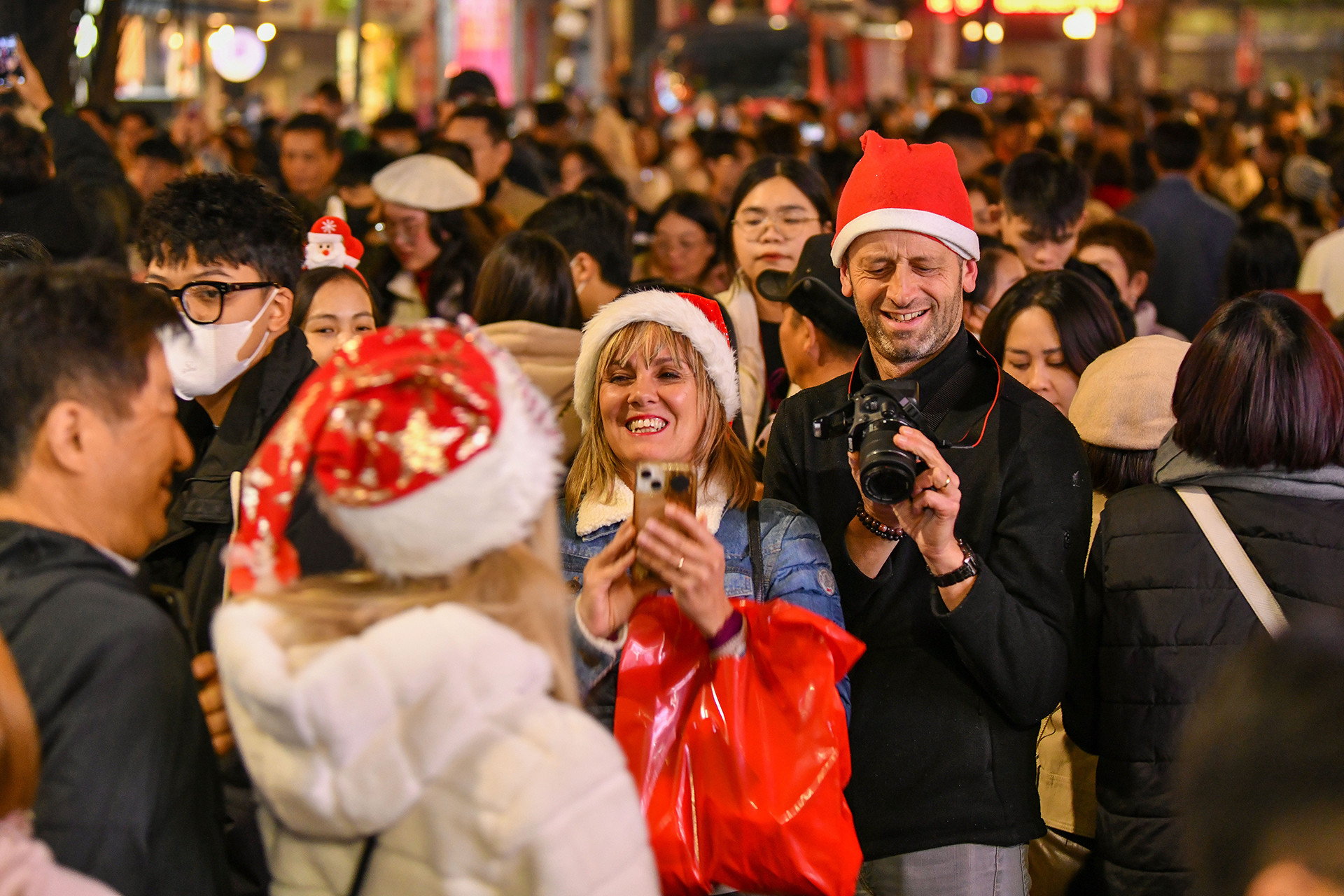 Nhiều gia đình nước ngoài cũng hòa cùng không khí Đêm Giáng sinh.