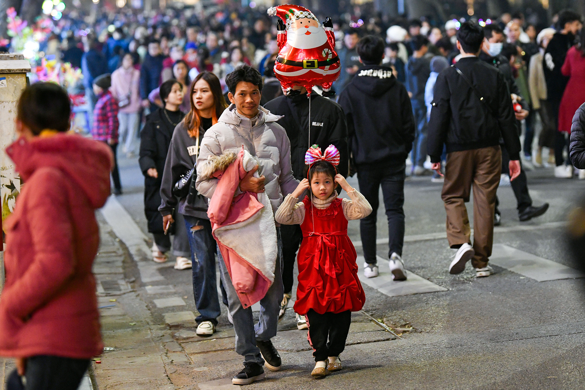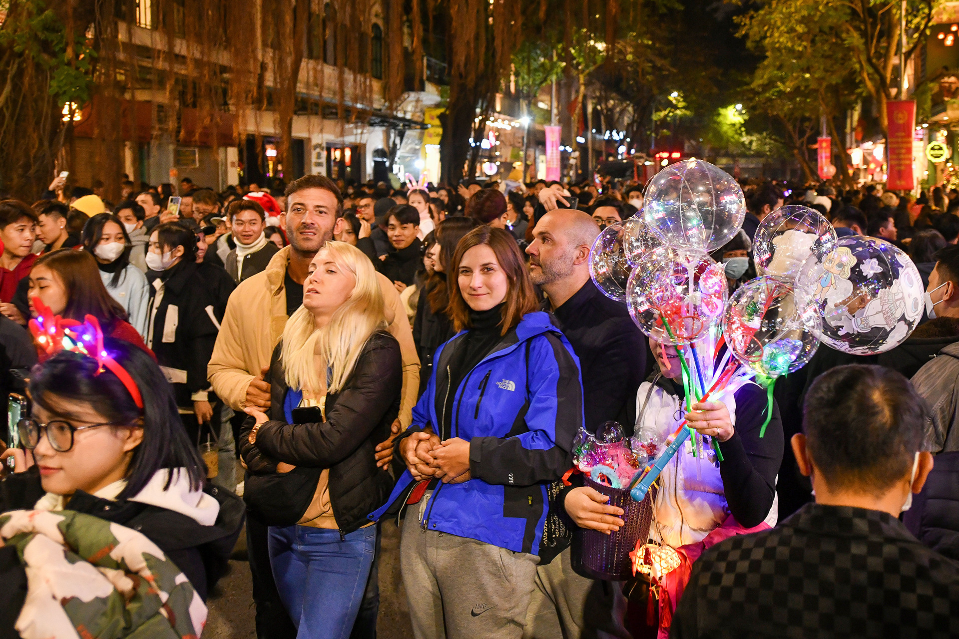 Tối 24/12/, đông đảo người dân, du khách và giới trẻ đã đổ xuống đường tìm về khu vực trung tâm của Thủ đô, đến các nhà thờ để tụ tập đón Lễ Giáng sinh trong không khí an lành, vui tươi và ấm áp.