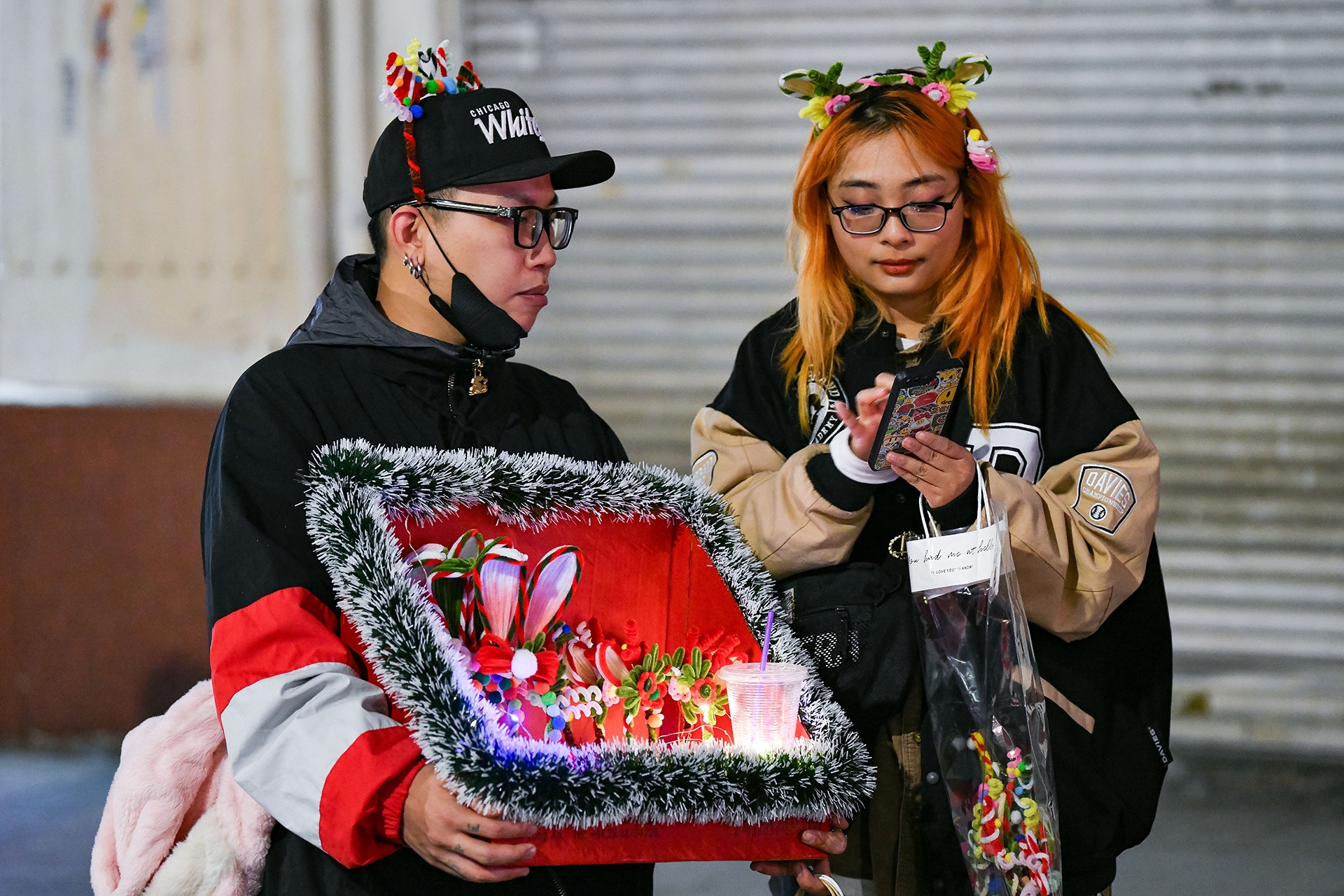 Các cặp đôi trẻ tận hưởng bầu không khí Đêm Giáng sinh.