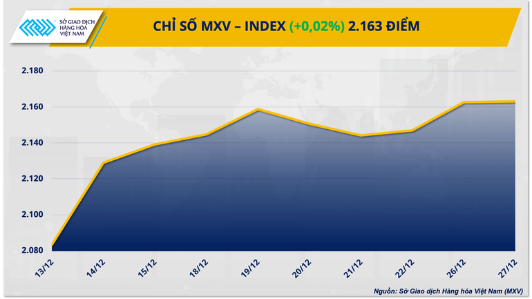 Tuy nhiên, lực mua chiếm ưu thế đã kéo chỉ số MXV-Index nhích nhẹ lên 2.163 điểm. Giá trị giao dịch duy trì ổn định trên mức 5.300 tỷ đồng.