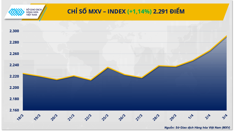 Giá lúa mì dẫn đầu đà tăng trong nhóm nông sản khi nhảy vọt gần 2% vào hôm qua. Theo MXV, lo ngại về hoạt động xuất khẩu ngũ cốc tại khu vực Biển Đen là yếu tố chính đã hỗ trợ cho giá mặt hàng này.