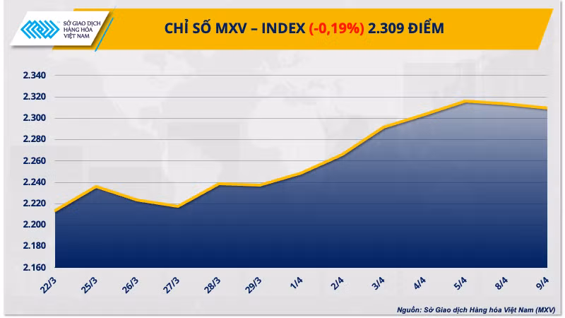 Số liệu từ Sở Giao dịch Hàng hóa Việt Nam (MXV) cho thấy, thị trường hàng hóa nguyên liệu thế giới đóng cửa hôm qua với diễn biến phân hóa. Sắc đỏ phủ kín bảng giá nông sản và năng lượng. Trong khi đó, lực mua áp đảo thế trên nhóm kim loại và nguyên liệu công nghiệp. Tuy nhiên, nhìn chung lực bán chiếm ưu thế kéo chỉ số MXV-Index suy yếu nhẹ ngày thứ 2 sau chuỗi tăng liên tiếp 1 tuần, với mức giảm 0,19% xuống còn 2.309 điểm.