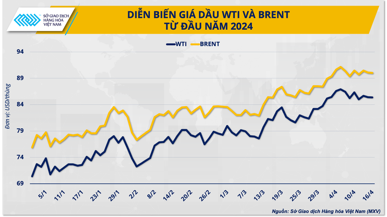 Tuy nhiên, trái ngược với các lo ngại của thị trường, giá dầu mở cửa phiên giao dịch đầu tuần với mức biến động không quá mạnh, thậm chí chịu áp lực khá rõ. Theo dữ liệu từ Sở Giao dịch Hàng hóa Việt Nam (MXV), giá dầu WTI kết thúc phiên giao dịch đầu tuần ngày 15/4 với mức giảm 0,29% xuống 85,41 USD/thùng. Dầu Brent giảm 0,39% xuống 90,10 USD/thùng.