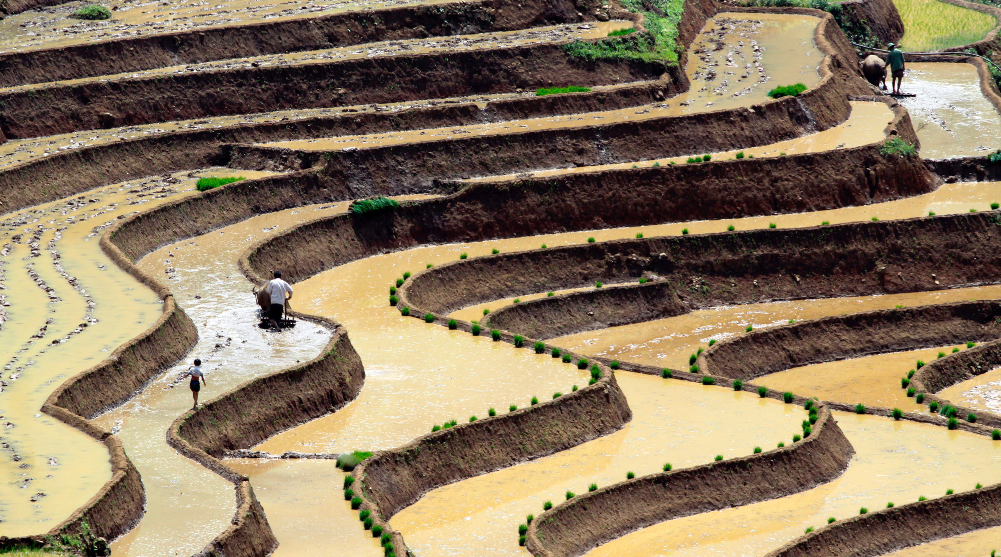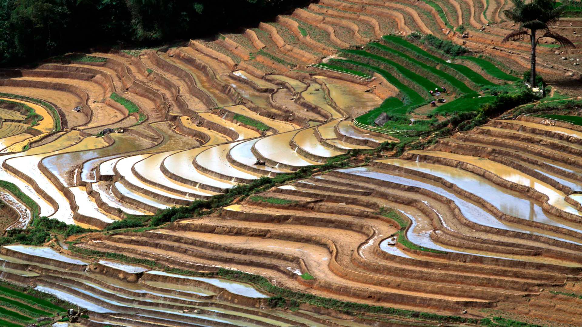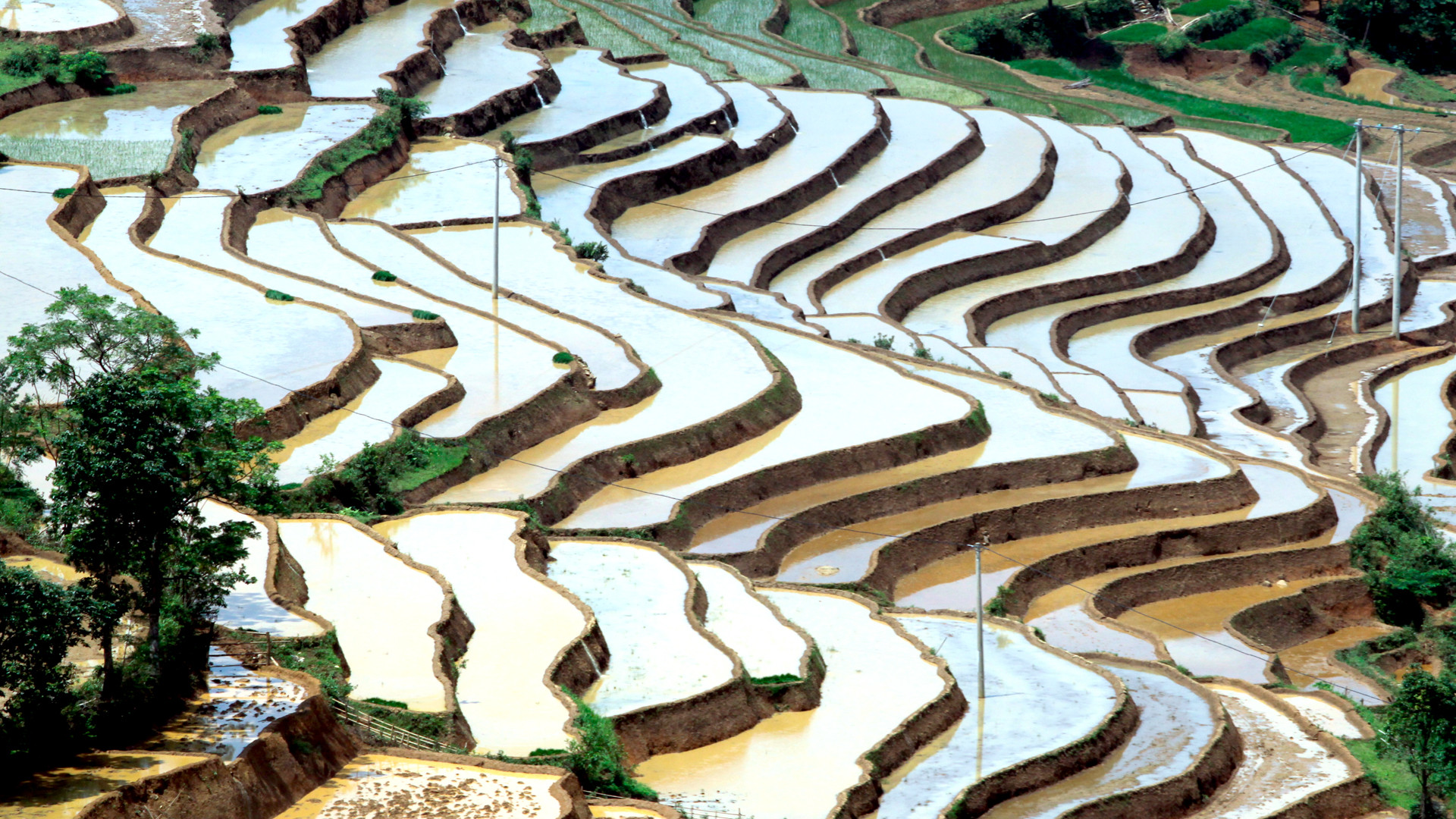 Ruộng bậc thang ở Lai Châu không chỉ đẹp vào mùa lúa chín, mà ngay cả vào mùa gieo cấy cũng đẹp như kỳ quan. Vào mùa này, những vạt ruộng bậc thang với những gam màu đa sắc đặc trưng của mùa nước đổ đẹp tựa một bức bích họa giữa non cao. Xen lẫn cánh đồng ruộng bậc thang là những ngôi nhà truyền thống của đồng bào, nơi lưu giữ nhiều nét văn hóa nông nghiệp riêng biệt của vùng cao Tây Bắc.