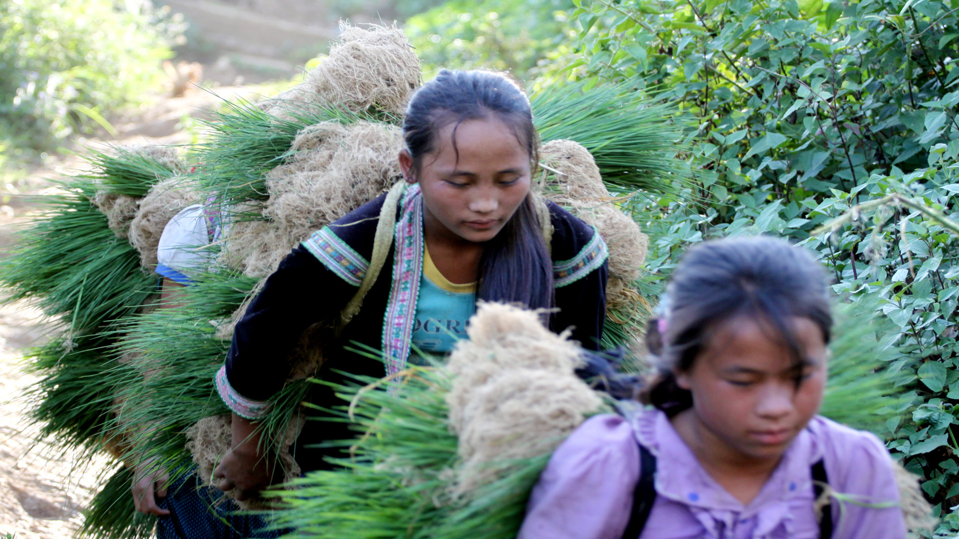 | Thay mẹ trông em ngay tại ruộng để bố mẹ yên tâm xuống giống, bảo đảm được thời vụ. |