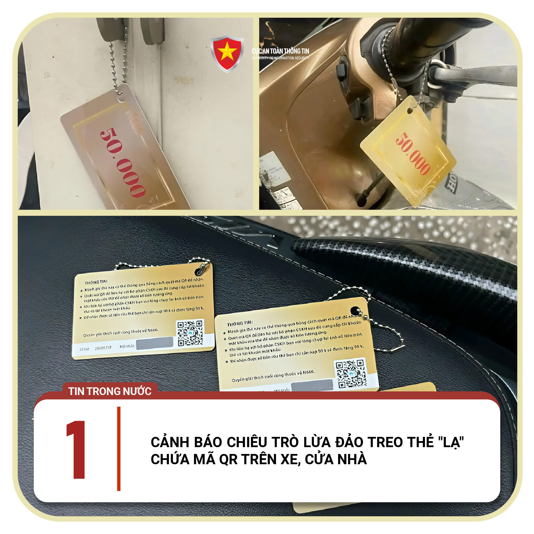 CẢNH BÁO CHIÊU TRÒ LỪA ĐẢO TREO THẺ "LẠ" CHỨA MÃ QR TRÊN XE, CỬA NHÀ