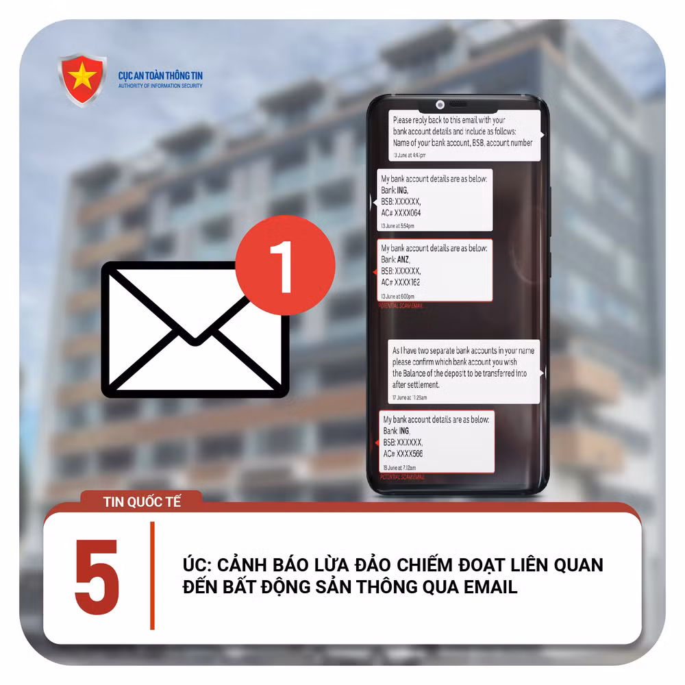 AUSTRALIA: CẢNH BÁO LỪA ĐẢO CHIẾM ĐOẠT LIÊN QUAN ĐẾN BẤT ĐỘNG SẢN THÔNG QUA EMAIL