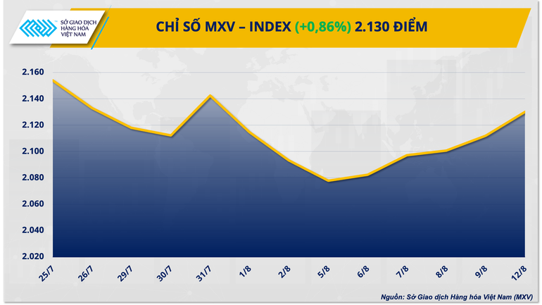 Theo Sở Giao dịch Hàng hóa Việt Nam (MXV), lực mua tiếp tục áp đảo trên thị trường hàng hóa nguyên liệu thế giới ngày giao dịch đầu tuần (12/8). Trong đó, nhóm năng lượng dẫn dắt xu hướng toàn thị trường khi cả năm mặt hàng đồng loạt tăng giá.