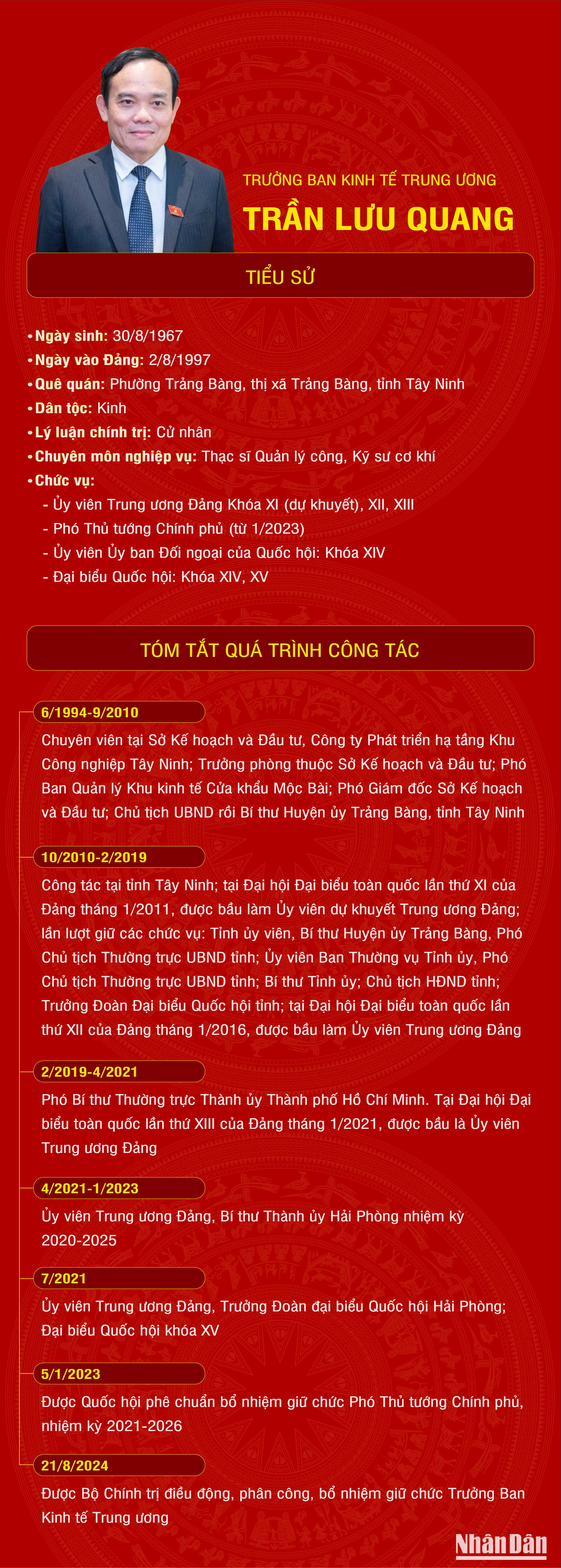[Infographic] Tiểu sử tân Trưởng Ban Kinh tế Trung ương Trần Lưu Quang