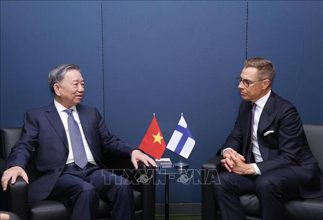 Gặp Tổng thống Phần Lan Alexander Stubb, Tổng Bí thư, Chủ tịch nước khẳng định Việt Nam coi trọng phát triển quan hệ hữu nghị truyền thống và hợp tác nhiều mặt với Phần Lan; cảm ơn Chính phủ và Nhân dân Phần Lan đã hỗ trợ Việt Nam trong giai đoạn khó khăn trước đây và từng bước phát triển, đặc biệt là thực hiện tốt các mục tiêu phát triển bền vững (SDGs) cũng như đã gửi lời thăm hỏi, động viên nhân dân Việt Nam khắc phục hậu quả của cơn bão số 3 vừa qua.