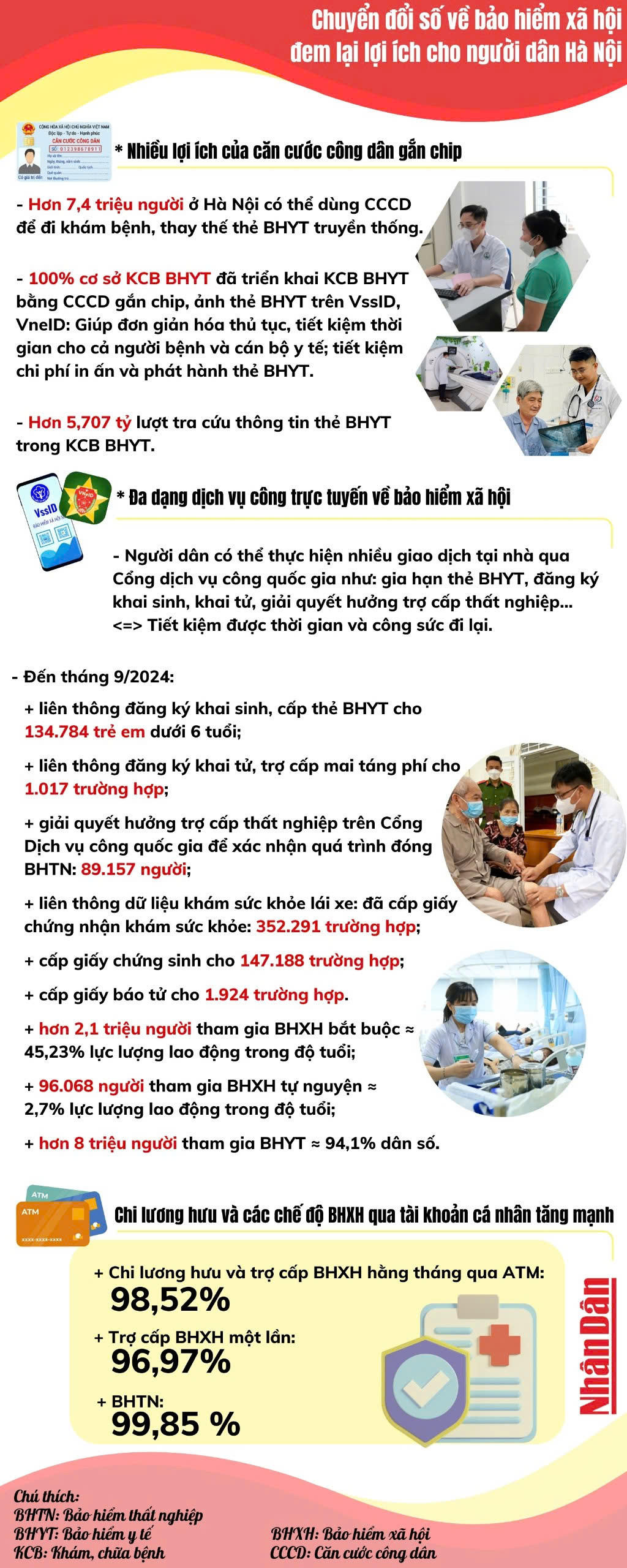 [Infographic] Chuyển đổi số về bảo hiểm xã hội đem lại lợi ích cho người dân Hà Nội