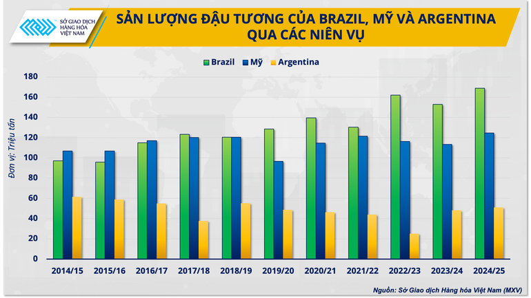 Bên cạnh lo ngại về sự thay đổi chính sách thương mại của Mỹ, tâm lý dự trữ đậu tương của Trung Quốc còn xuất phát từ nhu cầu tận dụng nguồn cung lớn từ các vụ mùa dồi dào của Mỹ và Brazil.