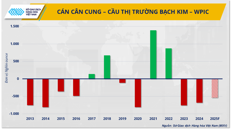 Tuy nhiên, do nguồn cung không được đảm bảo, hai kim loại này đều hướng tới năm thâm hụt thứ ba liên tiếp. Điều này đặc biệt nghiêm trọng đối với bạch kim, do nguồn cung của kim loại này luôn bị đe dọa bởi tình trạng gián đoạn nguồn cung tại Nam Phi. Đây là khu vực có trữ lượng bạch kim lớn nhất thế giới đồng thời cũng là quốc gia cung ứng lớn nhất - chiếm thị phần hơn 70% trong tổng nguồn cung toàn cầu. Mặc dù vậy, hoạt động khai thác bạch kim tại đây lại hay gặp gián đoạn bởi nguồn điện không được đảm bảo. Do đó, sản lượng bạch kim của Nam Phi được dự báo sẽ giảm năm thứ ba liên tiếp xuống còn 3,929 triệu ounce, đưa mức thâm hụt tăng lên 539.000 ounce trong năm nay.