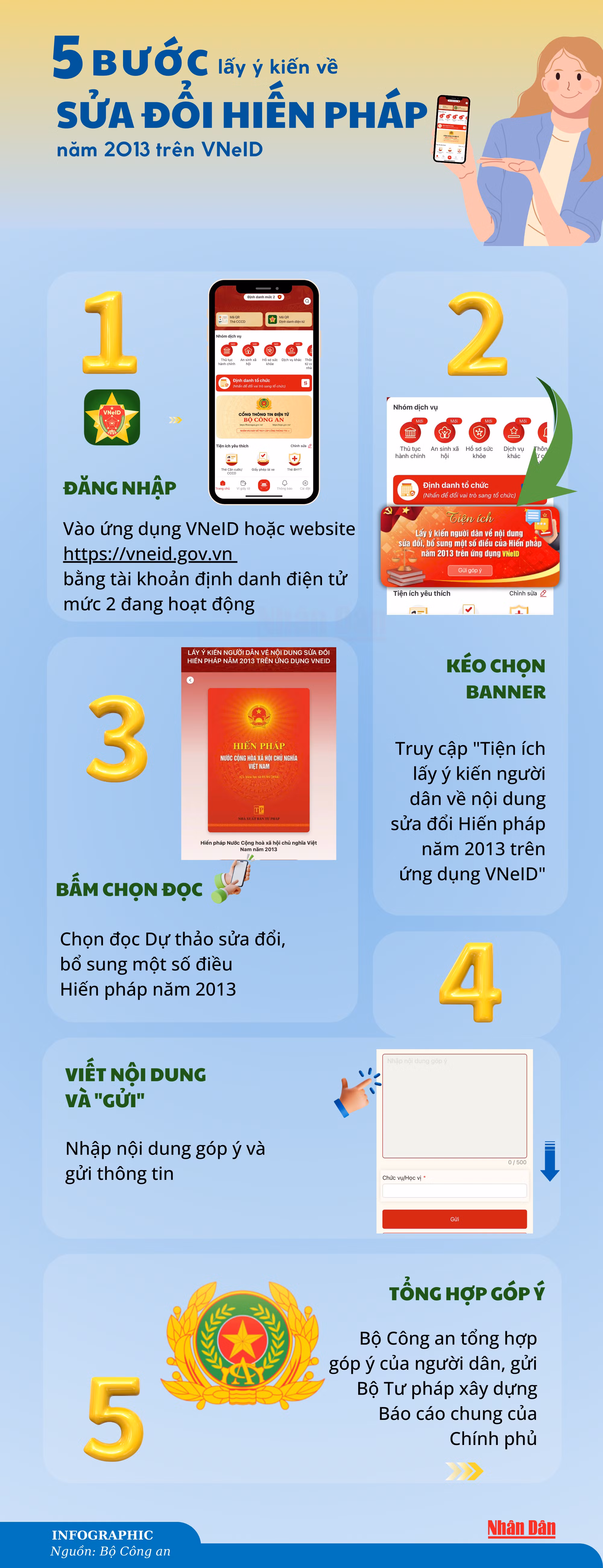 [Infographic] Các bước lấy ý kiến về sửa đổi Hiến pháp năm 2013 trên VNeID